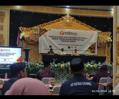 Sengkang- Badan Pengawas Pemilihan Umum (Bawaslu) Provinsi Sulawesi Selatan mengintensifkan pengawasan terhadap kampanye Pilkada 2024 melalui sosialisasi patroli siber. Kegiatan tersebut digelar pada Kamis (21/11/2024) di Sallo Hotel Sengkang. Acara ini bertujuan mengawasi konten kampanye di media sosial yang kian marak menjelang pesta demokrasi tahun depan.