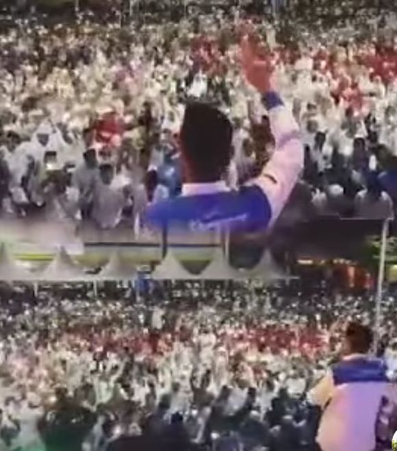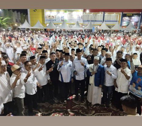Dalam suasana yang penuh kehangatan, para pendukung tampak antusias mendengarkan orasi dari tokoh-tokoh agama dan politik yang hadir.