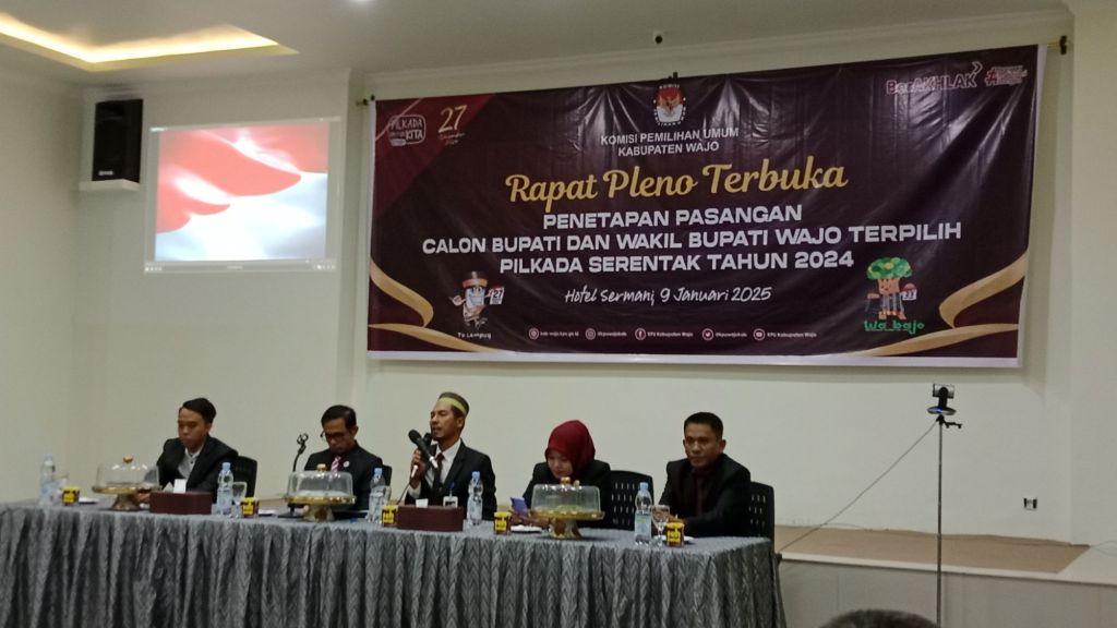 Wajo – Komisi Pemilihan Umum (KPU) Kabupaten Wajo resmi menetapkan pasangan Andi Rosman dan dr Baso Rahmanuddin (AR-Rahman) sebagai Bupati dan Wakil Bupati Wajo terpilih dalam Pilkada serentak 2024.