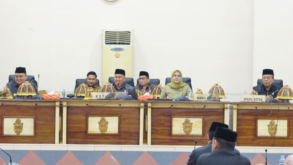 Rapat paripurna dihadiri oleh berbagai elemen penting daerah, termasuk Penjabat Bupati Wajo, Sekda Wajo, Forkopimda, perwakilan partai politik, KPU, Bawaslu, Kepala OPD, dan Camat.(Humas DPRD Wajo)