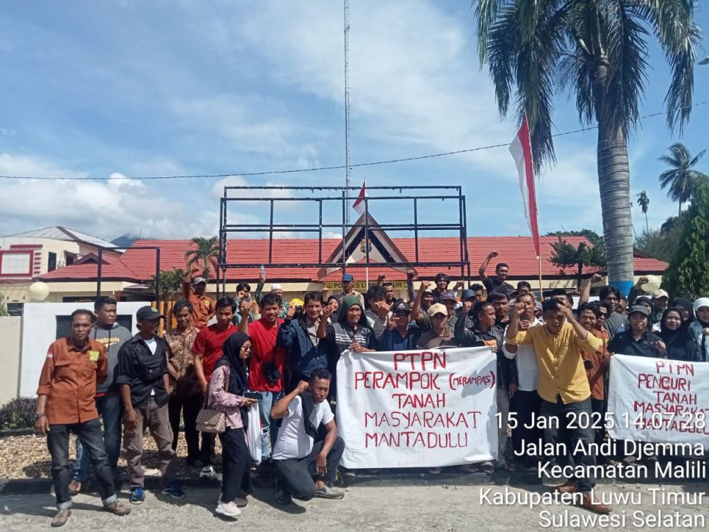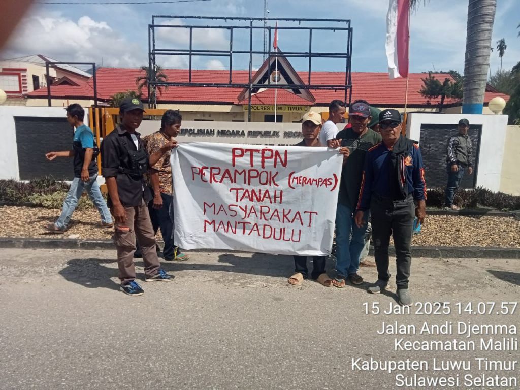 Laporan ini terkait aksi pendudukan lahan oleh warga yang mengklaim sebagai pemilik sah tanah yang dikelola PTPN IV tanpa Hak Guna Usaha (HGU) aktif. Rabu, 15 Januari 2024 Puluhan warga turut bersolidaritas mendampingi enam petani tersebut ke Kantor Polres Luwu Timur.