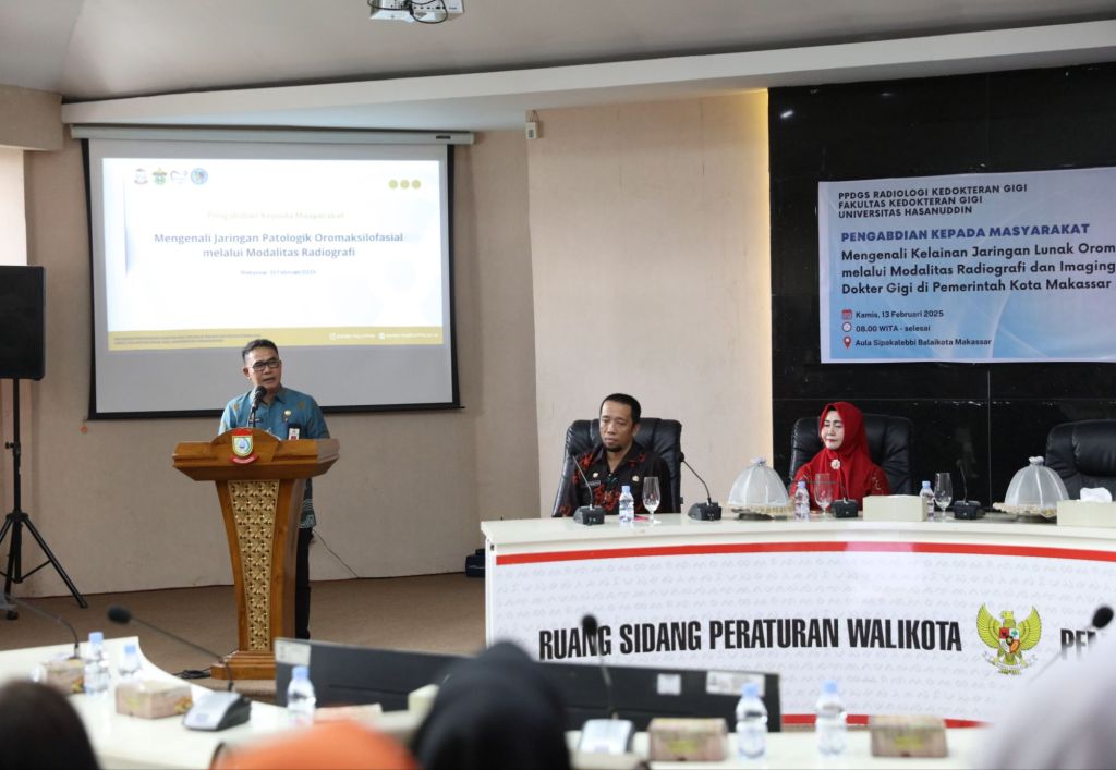 Sosialisasi ini diinisiasi oleh Program Pendidikan Dokter Gigi Spesialis Radiologi Kedokteran Gigi Unhas, dengan tema “Mengenali Jaringan Patologik Oromaksilofasial melalui Modalitas Radiografi.” Ketua Program Studi, Prof. Dr. drg. Barunawaty Yunus, menyampaikan bahwa kegiatan ini merupakan bagian dari tanggung jawab akademik dalam bidang pendidikan dan pengabdian kepada masyarakat.