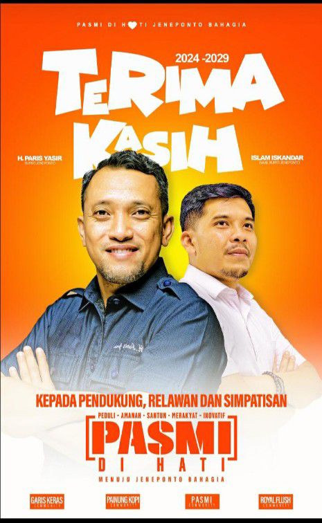 Baca juga : Paris Yasir dan Islam Iskandar Raih Suara Terbanyak dalam Pilkada Jeneponto 2024