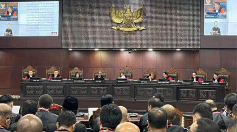 “Dalam eksepsi, menolak eksepsi termohon dan eksepsi pihak terkait untuk seluruhnya. Dalam pokok permohonan, menolak permohonan pemohon untuk seluruhnya,” ujar Ketua Hakim MK, Suhartoyo, saat membacakan amar putusan.