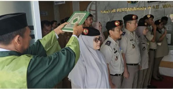 Wajo, – Celoteh.Online — Kantor Pertanahan Kabupaten Wajo melaksanakan Pelantikan dan Pengambilan Sumpah Panitia Ajudikasi dan Satuan Tugas untuk Program Pendaftaran Tanah Sistematis Lengkap (PTSL) Tahun Anggaran 2025. Kegiatan ini dipimpin oleh Plt Kepala Kantor Pertanahan Kabupaten Wajo, Dwi Agus Purwanto, serta dihadiri oleh Kepala Desa dan anggota tim yang terlibat dalam program ini.