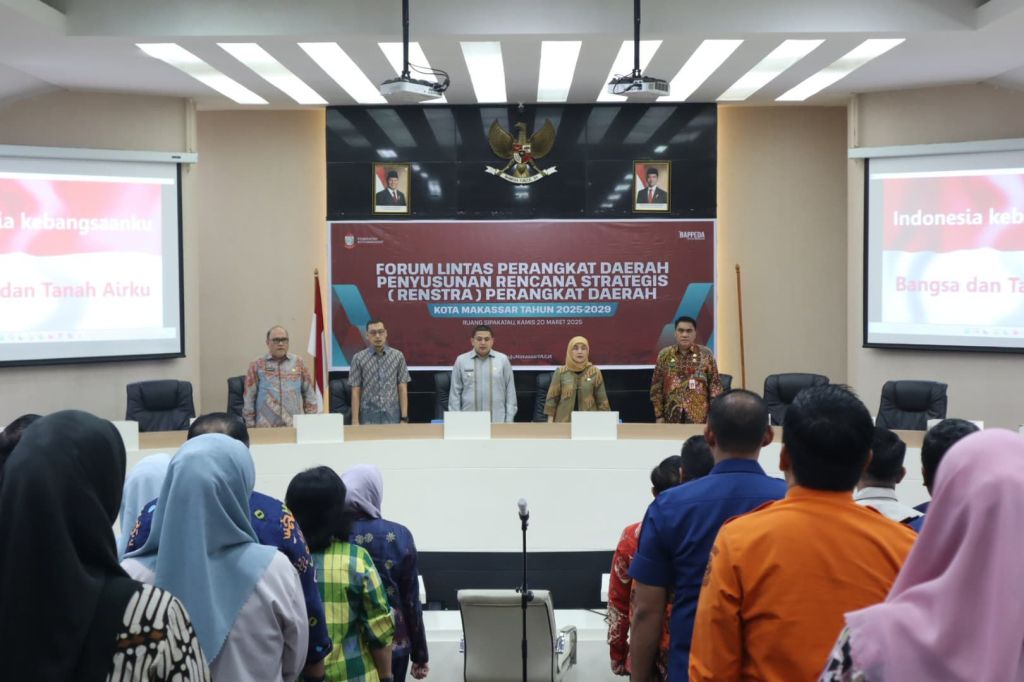MAKASSAR –Celoteh.Online– Wali Kota Makassar, Munafri Arifuddin, secara resmi membuka Forum Lintas Perangkat Daerah dalam rangka penyusunan Rencana Strategis (Renstra) Perangkat Daerah Kota Makassar Tahun 2025-2029. Acara ini berlangsung di Ruang Sipakatau, Balai Kota Makassar, pada Kamis (20/3/2025) dan dihadiri oleh Wakil Wali Kota Makassar, Aliyah Mustika Ilham, tim transisi MULIA, para asisten, staf ahli Pemkot Makassar, serta kepala Organisasi Perangkat Daerah (OPD).