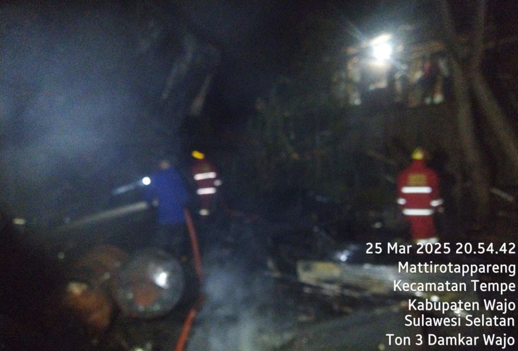 WAJO, – Celoteh.Online – Sebuah rumah panggung di Jalan Kandea Budi Utomo Selatan, Kelurahan Mattiro Tappareng, Kecamatan Tempe, Kabupaten Wajo, terbakar pada Selasa (25/3/2025) pukul 20.15 WITA. Kebakaran yang diduga akibat korsleting listrik ini menghanguskan seluruh bangunan dan menyebabkan kerugian sekitar Rp 50 juta.