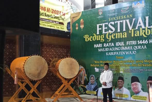 Festival Bedug Gema Takbir ini menampilkan atraksi bedug dan takbir dari berbagai kecamatan di Kabupaten Wajo, menciptakan suasana penuh syukur dan semangat kebersamaan. Antusiasme masyarakat terlihat jelas dengan banyaknya peserta dan penonton yang hadir, membuat malam takbiran di Wajo semakin semarak dan penuh makna.