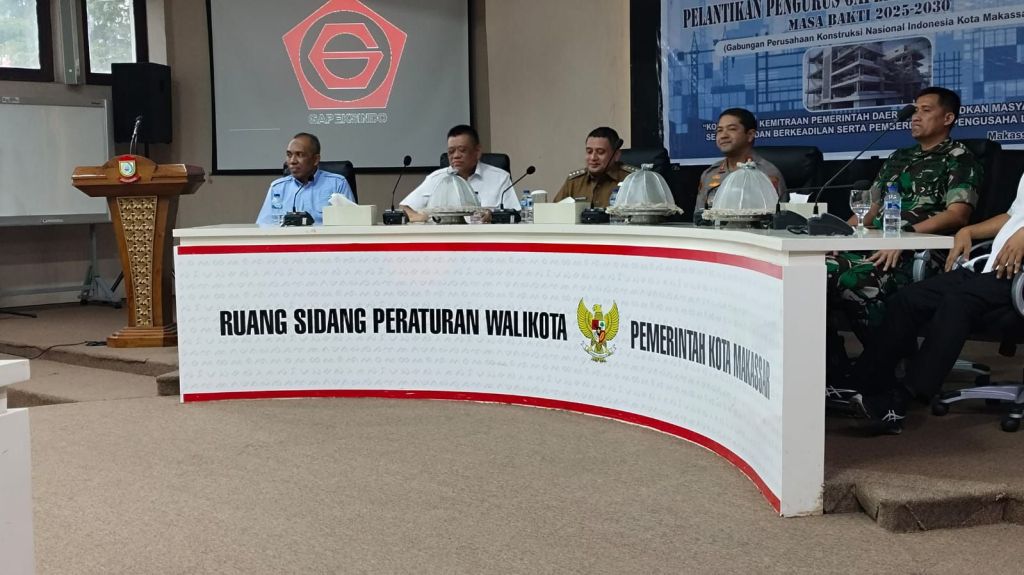 Makassar, – Celoteh.Online– Gabungan Perusahaan Konstruksi Nasional Indonesia (GAPEKSINDO) Kota Makassar resmi melantik pengurus baru masa bakti 2025–2030 dalam sebuah seremoni di Balai Kota Makassar, Senin (19/5). Pelantikan berlangsung khidmat dan dihadiri sejumlah tokoh penting, termasuk Wali Kota Makassar H. Munafri Arifuddin S.H., Kapolrestabes Makassar, Dandim 1408/BS, serta pengurus pusat dan wilayah GAPEKSINDO.