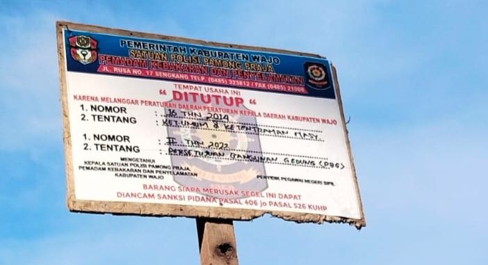Kepala Satuan Polisi Pamong Praja (Satpol PP) Kabupaten Wajo, Andi Bau Manussa, menegaskan larangan beroperasi kepada pihak pengembang.