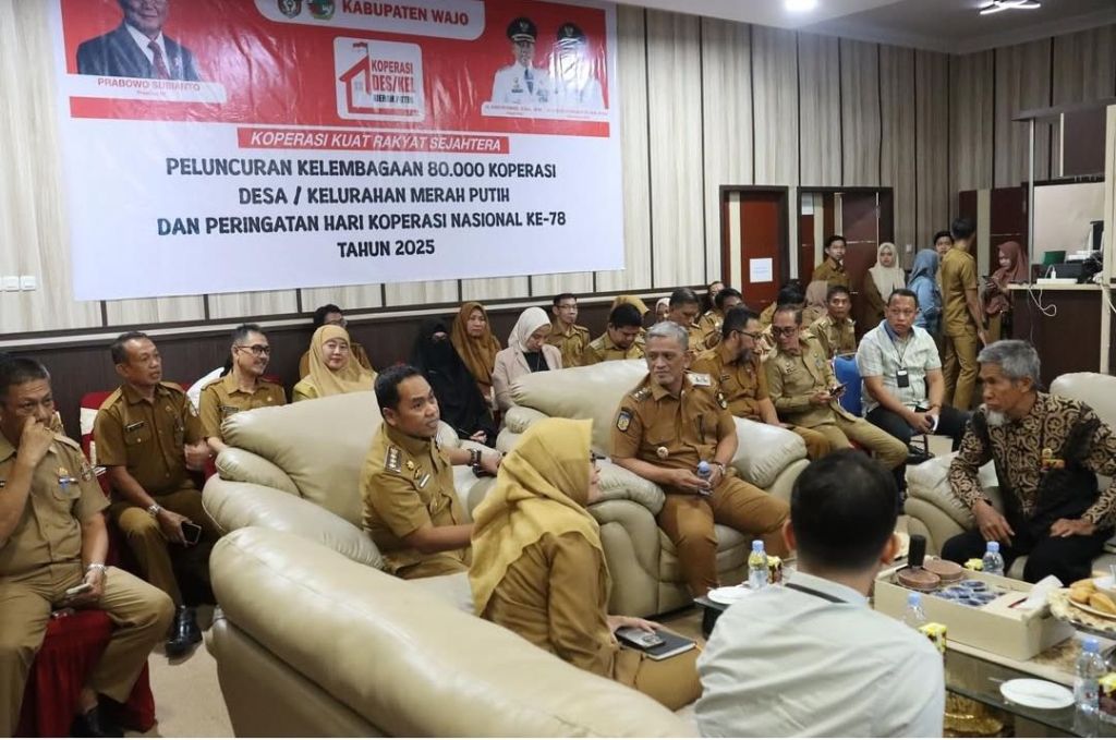 Wajo, Celoteh.Online – Bupati dan Wakil Bupati Wajo mengikuti acara peluncuran kelembagaan 80.000 koperasi desa/kelurahan Merah Putih secara daring di lounge Kantor Bupati Wajo, Senin (21/7/2025). Kegiatan yang dipusatkan di Klaten, Jawa Tengah, ini dihadiri langsung oleh Presiden Republik Indonesia dan diikuti secara daring oleh seluruh wali kota dan bupati se-Indonesia.