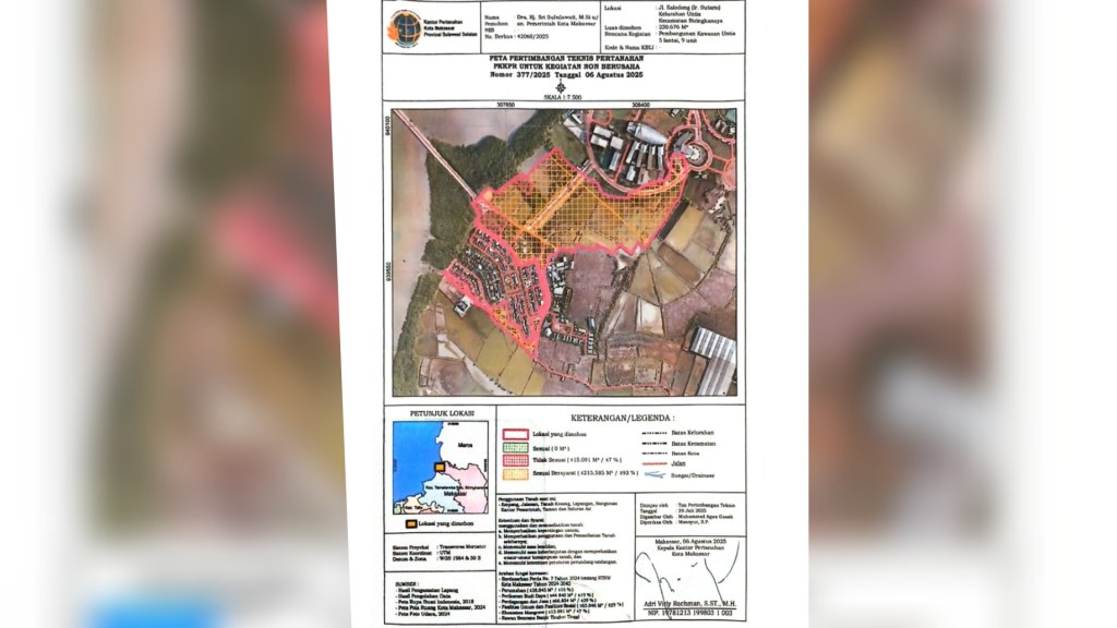 “Pengukuran lahan sudah kami lakukan. Dari total kurang lebih 24 hektare, sekitar 13,8 hektare telah bersertifikat. Sisanya masih dalam proses penyelesaian dokumen agar seluruh lahan memiliki status hukum yang jelas,” ujar Kepala Dinas Pertanahan Kota Makassar, Sri Sulsilawati, Kamis (21/8/2025).