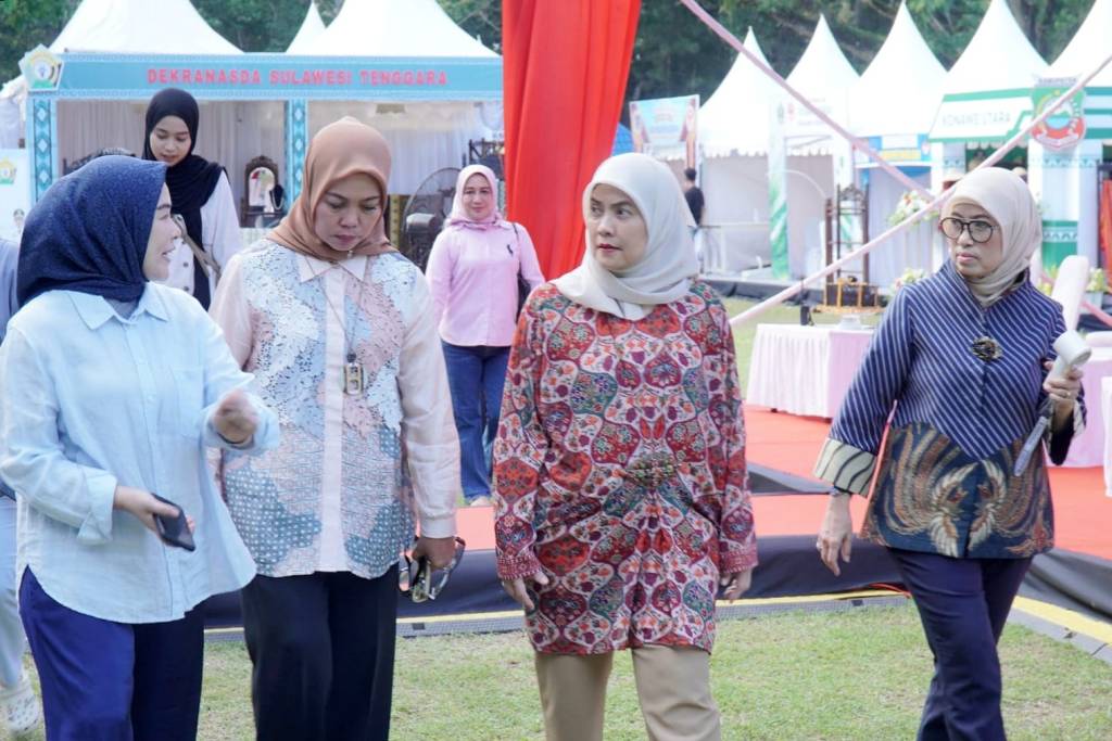 Ia meninjau sejumlah stand yang menampilkan karya unggulan UMKM serta produk ekonomi kreatif dari Dekranasda se-Kabupaten/Kota Sulawesi Tenggara.