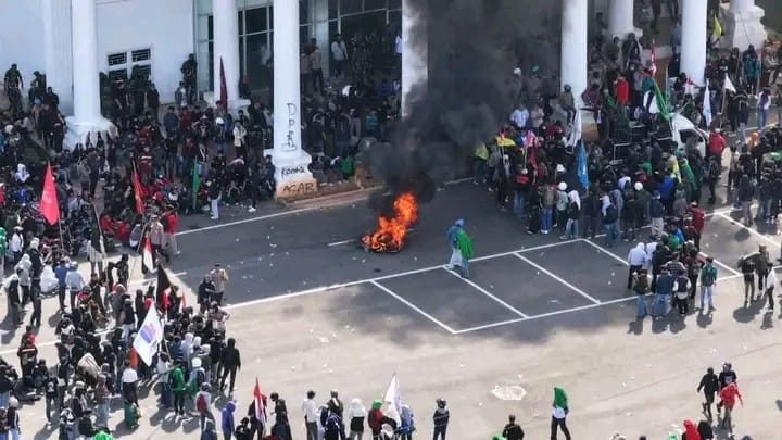 Palopo, Celoteh.Online – Aksi ribuan mahasiswa yang tergabung dalam aliansi Barisan dari Rakyat (Badar) di depan kantor DPRD Kota Palopo, Sulawesi Selatan, berakhir ricuh pada Senin (1/9/2025).