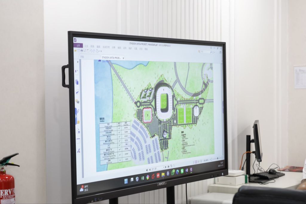 Sedangkan, General Project Manager, Mr. Xiao, bersama jajaran tim teknis. Presentasi desain dipandu oleh Fadel Syahnur selaku penerjemah yang menyampaikan perspektif perusahaan asal Tiongkok tersebut.
