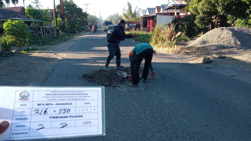 Hasil dari respon cepat itu kini sudah mulai terlihat. Pada Selasa, 23 September 2025, sejumlah titik jalan berlubang di sepanjang poros Anabanua–Impa-impa mulai ditangani dengan perbaikan sementara. Hal ini diharapkan dapat memperlancar mobilitas masyarakat sekaligus mendukung kesiapan Wajo sebagai tuan rumah MQKI.
