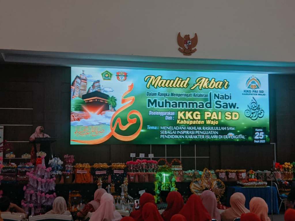 Wajo, Celoteh.Online – Kelompok Kerja Guru Pendidikan Agama Islam (KKG PAI) SD Kabupaten Wajo menggelar Maulid Akbar di Ruang Pola Kantor Bupati Wajo, Kamis (25/9/2025).