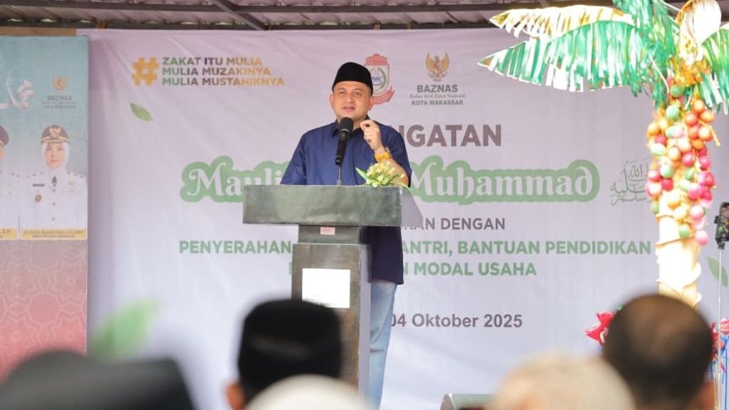 Hal itu disampaikan Munafri saat memberikan sambutan pada kegiatan peringatan Maulid Nabi Muhammad SAW yang digelar Baznas Kota Makassar di kantor Baznas, Jalan Tedu Bersinar, Sabtu (4/10/2025).