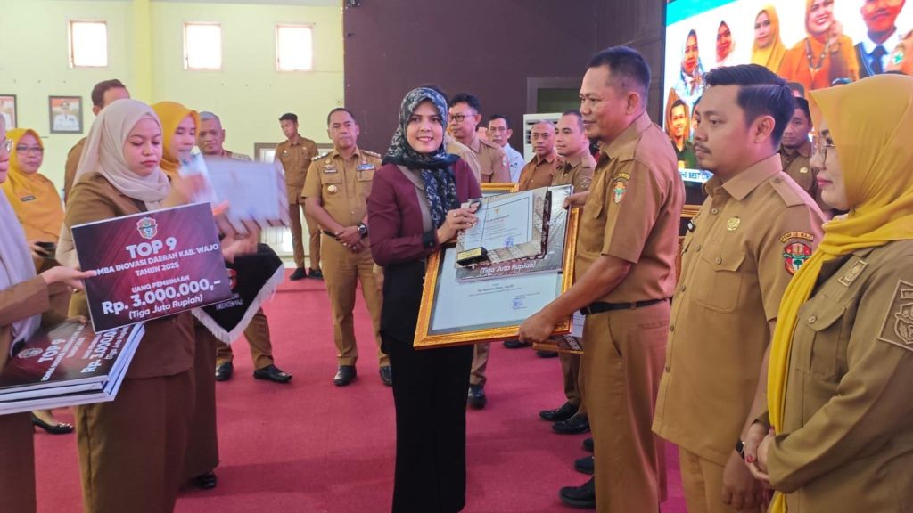 Wajo, Celoteh.online – Wakil Ketua I DPRD Wajo, Andi Merly Iswita menghadiri acara penganugerahan kepada para inovator dalam Kompetisi Inovasi Daerah Kabupaten Wajo Tahun 2025 di Ruang Pola Kantor Bupati Wajo, Selasa, 14 Oktober 2025.Tak hanya menghadiri, politisi PAN itu mendapat kehormatan menyerahkan penghargaan kepada para inovator.