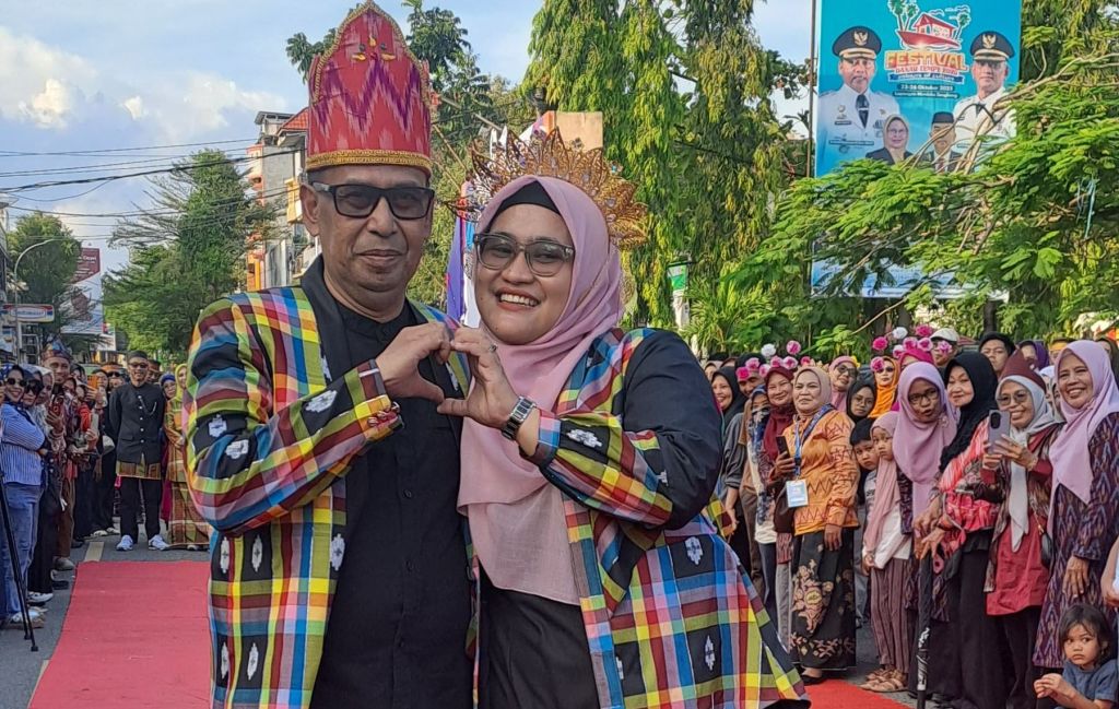 Salah satu yang mencuri perhatian adalah Sekretaris DPRD Kabupaten Wajo, Andi Ismirar Sentosa, yang tampil bersama sang istri. Keduanya berjalan anggun di atas karpet merah mengenakan busana elegan bernuansa hitam, dipadukan dengan jas sutera bermotif kotak pelangi khas Sutera Sengkang.