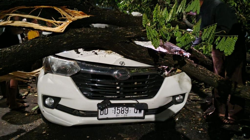 Mobil yang tertimpa diketahui berjenis Daihatsu Xenia dengan nomor polisi DD 1589 QW. Akibat tertimpa batang pohon, bagian depan dan atap mobil ringsek parah. Di dalam mobil tersebut terdapat tiga orang: sang sopir dan dua penumpang perempuan.