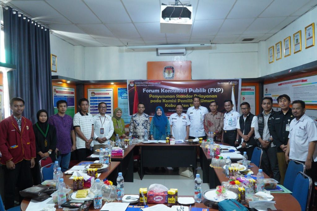 WAJO – Celoteh.Online – Komisi Pemilihan Umum (KPU) Kabupaten Wajo menggelar Forum Konsultasi Publik (FKP) tentang Rancangan Standar Pelayanan Layanan Pendidikan Kepemiluan, bertempat di Aula Kantor KPU Wajo, Rabu (12/11/2025) pukul 09.00 WITA.