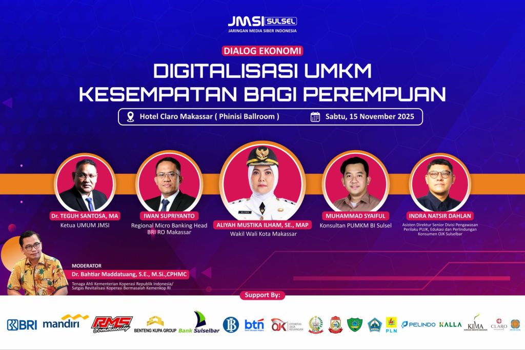 “Dari tema ini kita aplikasikan juga dalam bentuk dialog ekonomi yang membahas tentang digitalisasi UMKM kesempatan bagi perempuan. Ini menjadi pertanda kesiapan JMSI Sulsel mengambil peranan penting dalam mendorong perekonomian di Sulsel,” tambah Haeruddin.