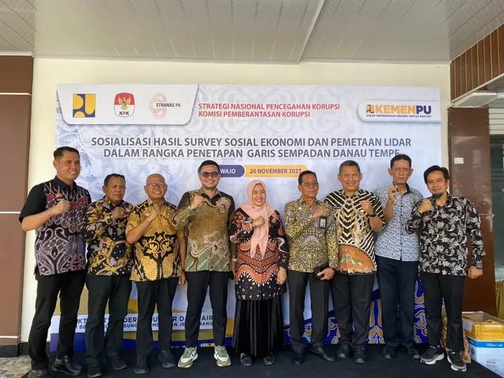 Wajo, Celoteh.Online – Direktorat Jenderal Sumber Daya Air melalui Balai Besar Wilayah Sungai (BBWS) Pompengan Jeneberang menggelar Sosialisasi Hasil Survei Sosial Ekonomi dan Penetapan LiDAR sebagai bagian dari proses penetapan garis sempadan Danau Tempe.