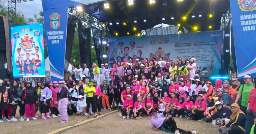 Wajo – Celoteh Online – Festival UMKM Karang Taruna Fest 2025 kembali menyajikan hiburan meriah bagi masyarakat melalui gelaran Zumba Party yang berlangsung di Lapangan Merdeka Sengkang, Selasa (9/12/2025). Acara ini dipadati peserta dari berbagai kalangan hingga membuat suasana lapangan semakin hidup dan penuh semangat.