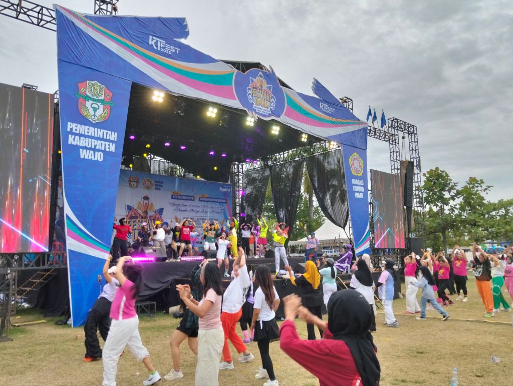 Kemeriahan semakin terasa dengan hadirnya komunitas-komunitas zumba dari kabupaten tetangga, seperti Sidrap dan Soppeng, yang turut ambil bagian untuk memeriahkan rangkaian kegiatan KT Fest 2025. Gerakan energik para instruktur dan peserta menyulut antusiasme pengunjung yang memadati area kegiatan.
