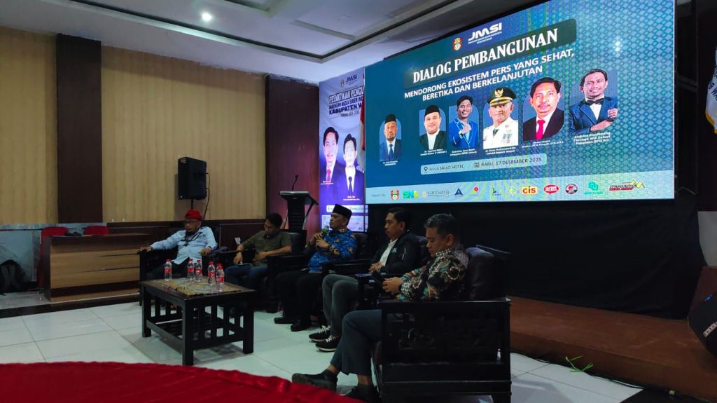 Wajo – Celoteh.online –Peran internet dan media sosial dalam membentuk kekuasaan dan opini publik menjadi salah satu pokok bahasan penting dalam Dialog Pembangunan yang dirangkaikan dengan Pelantikan Pengurus Jaringan Media Siber Indonesia (JMSI) Kabupaten Wajo, di Sallo Hotel, Rabu (17/12/2025).