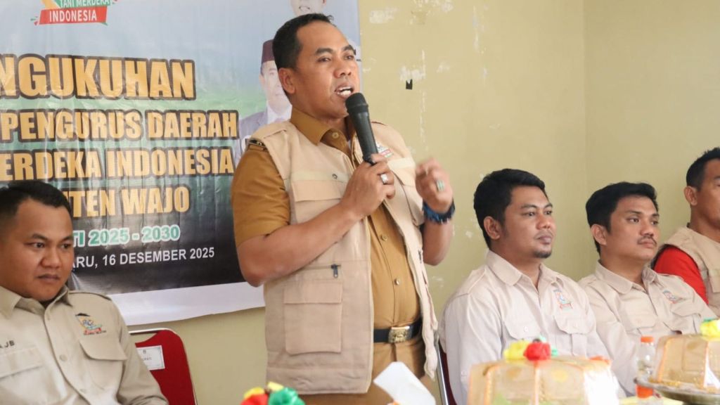 Wajo, Celoteh.Online – Bupati Wajo, Andi Rosman hadiri pengukuhan pengurus DPD Tani Merdeka Indonesia (TMI) di Aula Kantor Desa Pasaka, Kecamatan Sabbangparu, Kabupaten Wajo, Sulawesi Selatan (Sulsel), Selasa (16/12/2025).