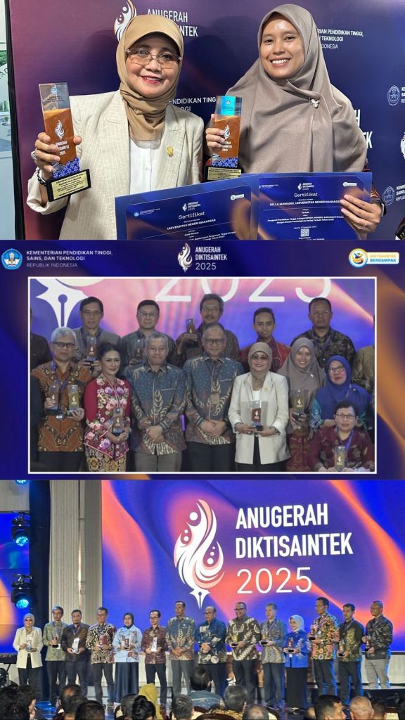 Pada puncak Anugerah Diktisaintek yang diselenggarakan Kementerian Pendidikan Tinggi, Sains, dan Teknologi (Kemdiktisaintek) yang digelar di Gedung Kantor Kemendiktisaintek Jakarta, Jumat (19/12/2025) UNM sukses menyabet 4 penghargaan dari 15 kategori yang ada.