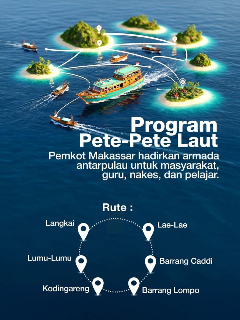 “Program Pete-pete Laut ini merupakan program prioritas Wali Kota Makassar (pak Munafri), dan sangat bermanfaat bagi saudara-saudara kita di pulau. Karena itu, kapalnya sudah ada, siap beroperasi tahun ini,” ujar Jusman, Senin (/22/2025).